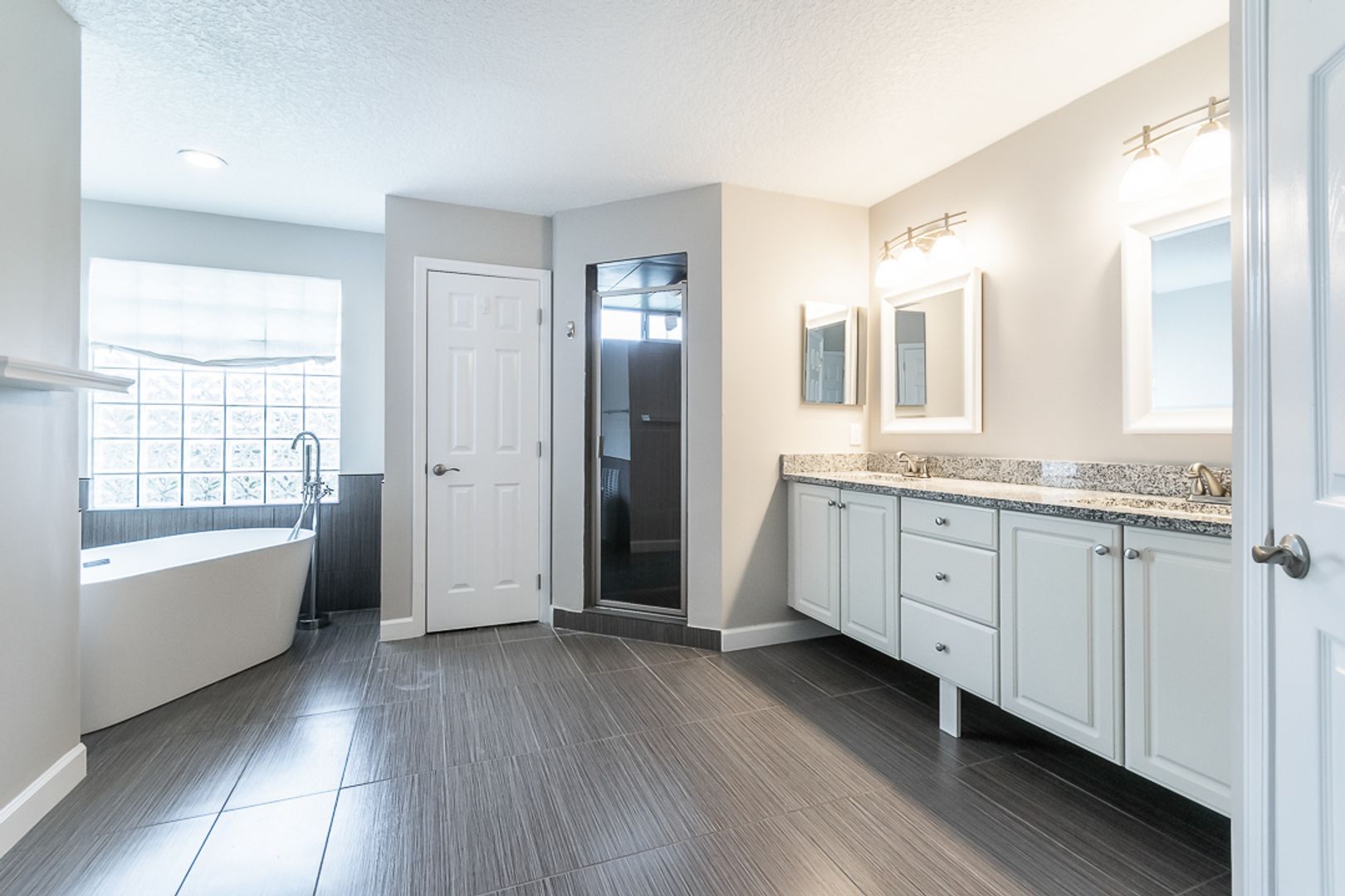 Each bathroom has been renovated beautifully! En-suite boasts an XL step-in shower, a separate garden tub, and dual granite vanities. The 2nd bathroom has a tub/ shower combo and the dual vanities are granite, as well.