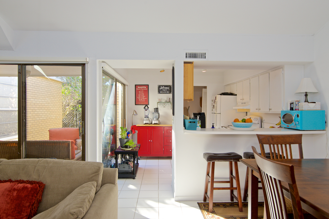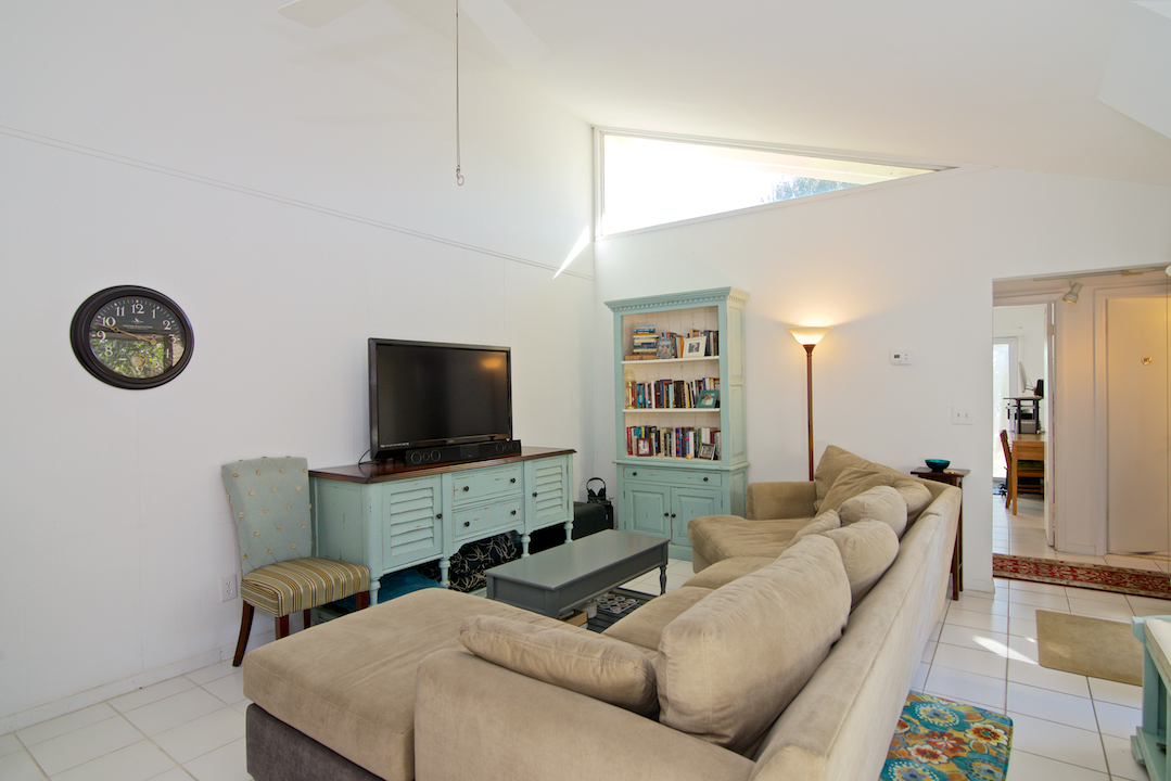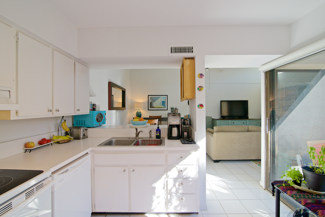 The open floor plan is just perfect for entertaining. The LR has vaulted ceilings and a clerestory window. Easy-care white ceramic tile floors throughout. The kitchen is large enough for a small table plus has a breakfast bar and access to patio. Laundry/utility room is 8 x 10 with W/D hook-ups. 2 large bedrooms, both with walk-in closets and bathrooms with skylights!