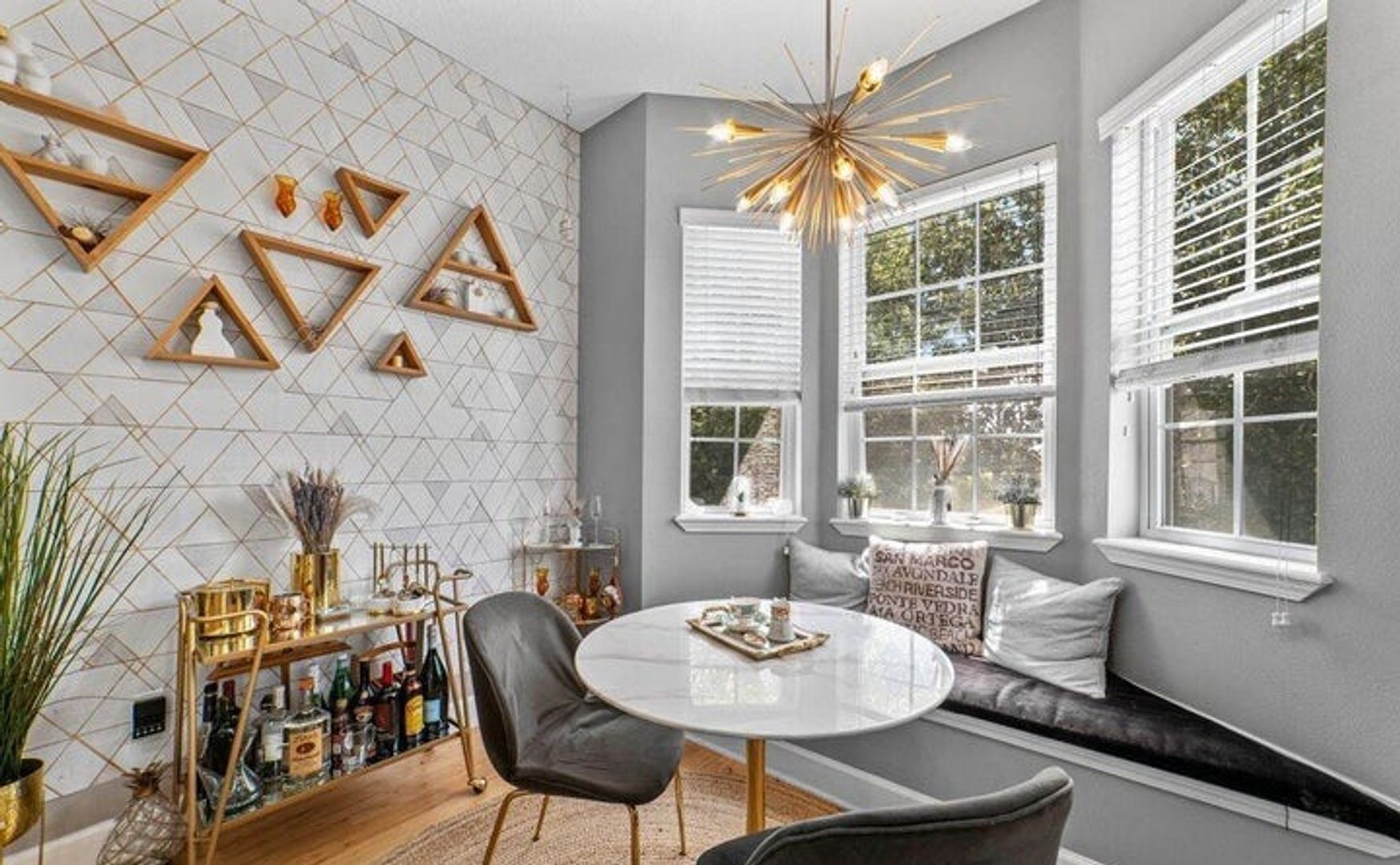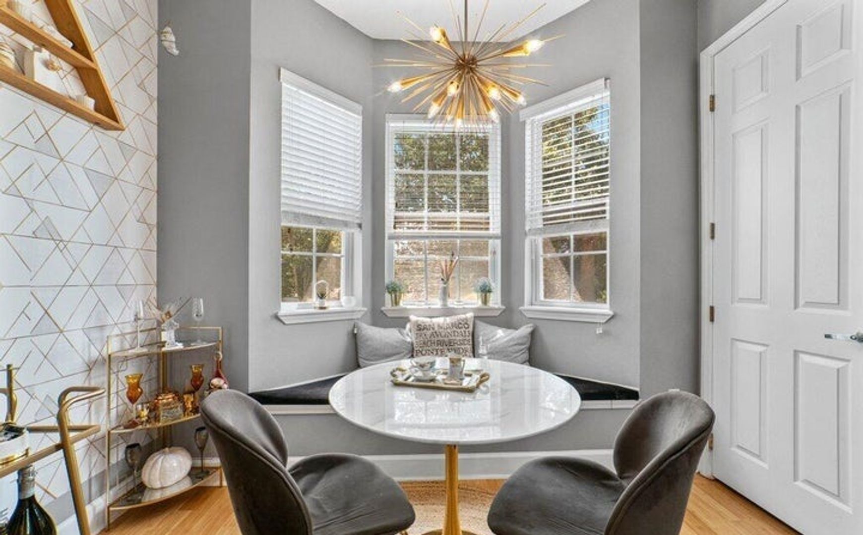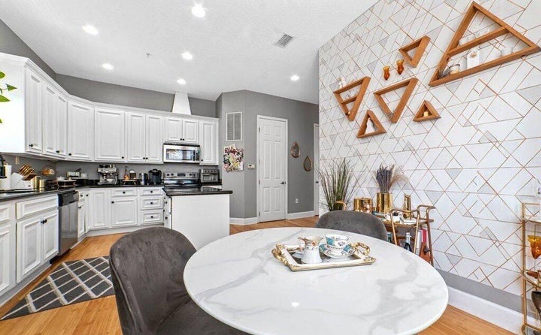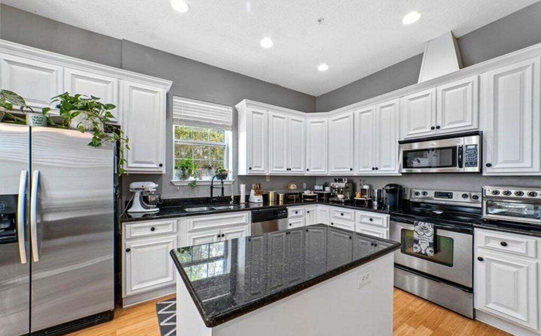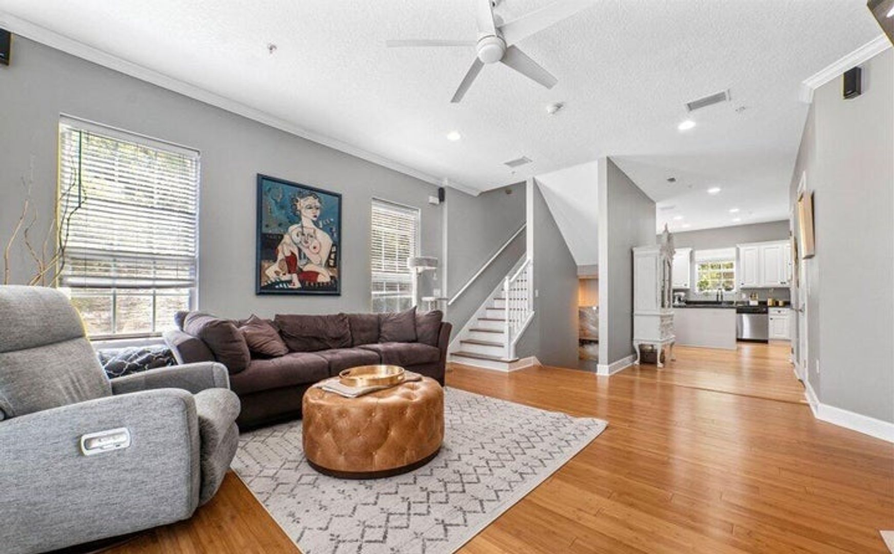 Step inside to find beautiful bamboo flooring that flows through the main areas, enhancing the bright, open atmosphere. The spacious, elegant gourmet kitchen features a cozy breakfast nook with a charming French Cafe style – perfect for morning meals.