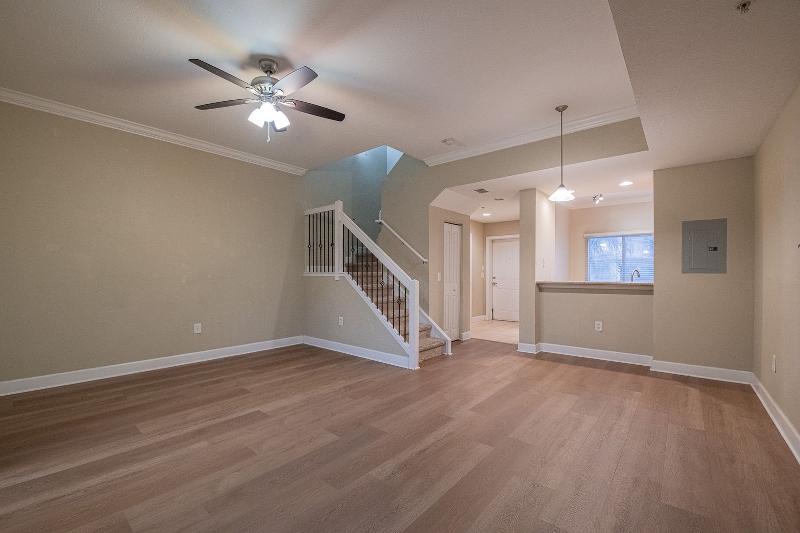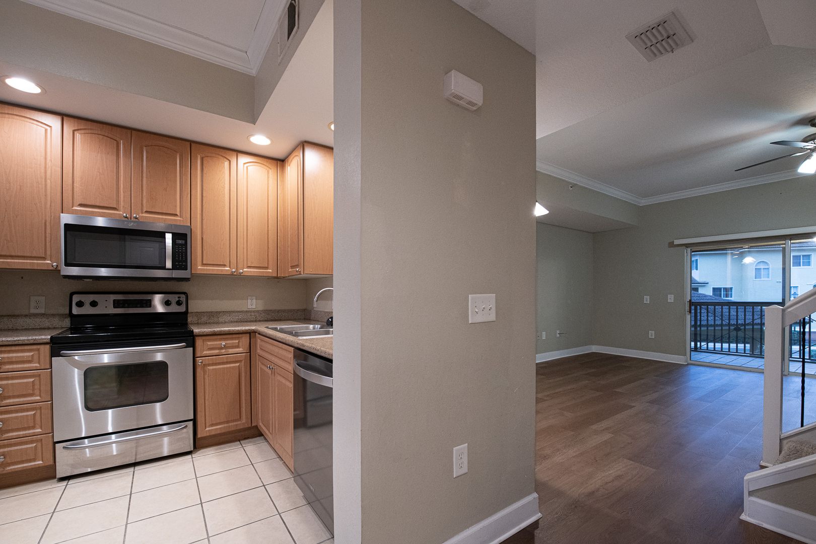 This spacious two-story condominium features 2 bedrooms and 2.5 bathrooms. A welcoming foyer leads into a large living room, providing ample space for both a comfortable living area and dining space. The kitchen is equipped with abundant storage and counter space, as well as room for a breakfast nook.